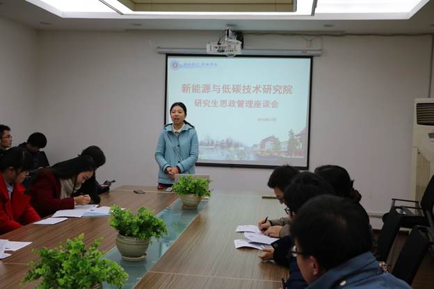新能源与低碳技术研究院研究生思政管理座谈会在望江校区化工楼227会议室顺利举行。本次活动的目的为,思政辅导员与研究生及其行政老师见面、交流,增进了解。参会的有低碳院祁老师、向老师,AV研究所