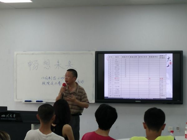 2013级制药工程专业2班开展的“跟班关爱学生成长教育实践”系列活动之一,在江安校区综合楼B座306教室举行。与会的有关工委梁明征老师、付运清老师、郭明秀老师、李维俊老师、秦自明老师、万国荣老师、谢茂农老师、徐怡老师、杨传云老师、张卫红老师、曾志源老师、赵雪琴老师、侯筑老师,制药2班班主任赵刚老师、AV研究所