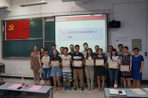 关于表彰2013--2015年度先进党支部、优秀共产党员和优秀党务工作者的决议》,通报了学院单位和个人受表彰情况。各位领导为获得先进党支部和优秀个人颁奖。