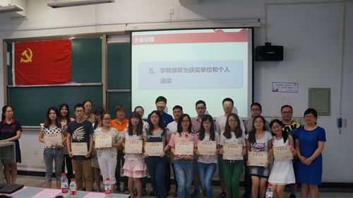 庆祝中国共产党建党94周年暨先进党支部、优秀共产党员和优秀党务工作者表彰大会在江安校区综合楼C-507教室举行。学院全体党委委员,全体教工、学生党支部书记,全体辅导员,2015年发展的新党员,入党积极分子,受表彰党员,教工和离退休党员代表参加了此次大会。大会由院分团委书记姜利寒老师主持。