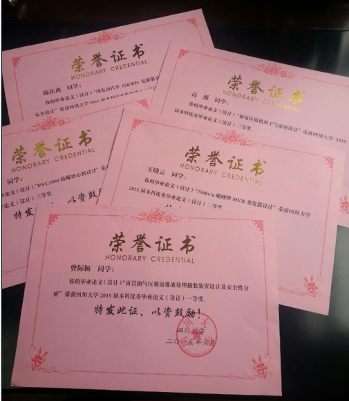褚良银教授指导刘露月同学完成的《基于仿生材料的温敏表面的制备与性能研究》、黄卫星教授指导潘大伟同学完成的《核电废水TEP系统脱气塔填料流体力学性能研究与传质计算》、宋航教授指导刘维燥同学完成的《新型托品醇类离子液体的合成、表征及其在Dl-苯丙氨酸拆分中的应用》、肖泽仪教授指导曾际颖同学完成的《页岩油气压裂返排液处理撬装装置设计及安全性分析》荣获了本届AV研究所