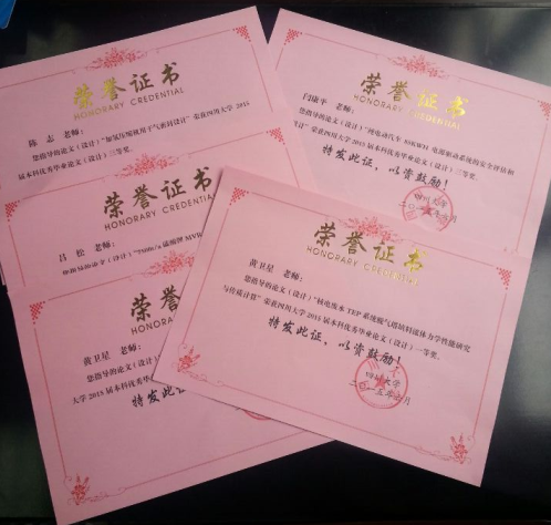 老师指导的28篇本科论文经过学院推荐、学校专家评审后分别获得2015届本科优秀毕业论文各等级奖励,其中一等奖4篇、二等奖5篇、三等奖19篇。