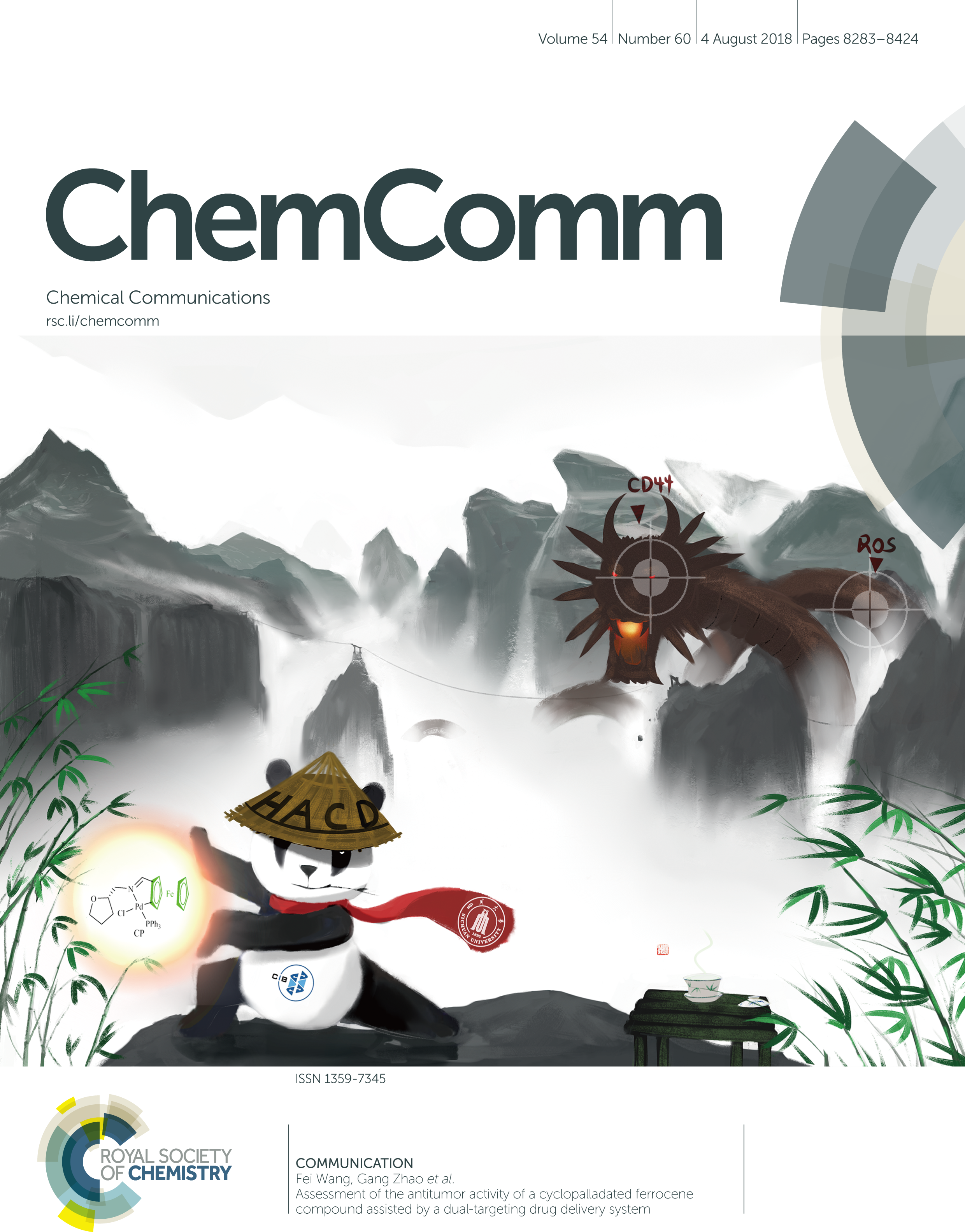 赵刚教授课题组在平面手性二茂铁环钯化合物抗肿瘤活性研究领域取得新突破,设计并制备出了高效低毒且具备靶向性的智能抗肿瘤纳米颗粒。相关成果“Assessment of the Antitumor Activity of a Cyclopalladated Ferrocene Compound Assisted by a Dual-targeting Drug Delivery System”发表在Nature Index期刊《Chem. Commun.》(影响因子6.29),由于其新颖的设计和良好的抗肿瘤活性被该杂志选为封面文章(Front cover)。AV研究所