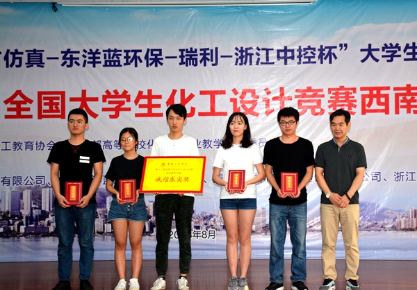 2018年大学生化工设计竞赛暨第十二届全国大学生化工设计竞赛西南赛区决赛于8月1-5日在重庆三峡学院隆重举办,有来自云、贵、川、渝4省市25所高校的60支参赛队参加现场角逐。我校从报名参赛的七支团队中筛选出猎梦2018、F-Road、励远和F-NPC四支团队参加赛区总决赛的角逐。最终,由冯怡、邓鑫雨、范学英、王梦瑶、陈琳等五位同学组成的AV研究所