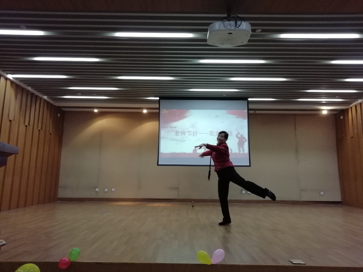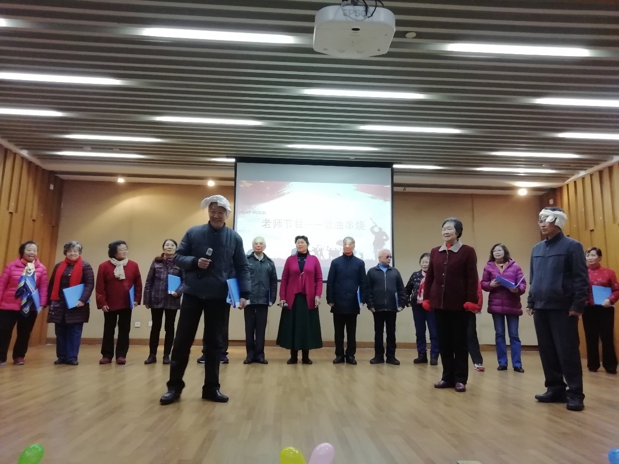 终于到了关工委老师们的才艺时间。耄耋之年的他们,依然活力四射,为同学们带来了歌舞串烧。李川娜老师的芭蕾舞——“北风吹”,仿佛将我们带回了白毛女的年代,一同感受苦难人民对美好生活的向往;刘蓉生老师的陕北民歌——“东方红”,让同学们惊叹于老师的音乐功底;最后是全体教师的《南泥湾》、《军民大生产》、《拥军秧歌》歌曲串烧……每一个节目都让同学们见识了退休老教师们的活力和多才多艺。
