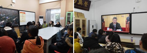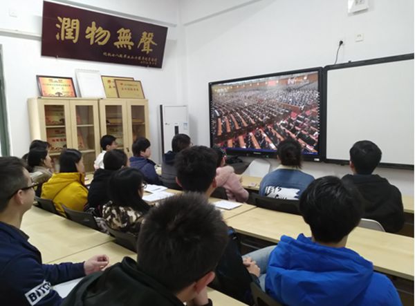 师生满怀激动心情,以课题组、党支部、班团组织和寝室为单位,纷纷聚在一起通过广播、电视、网络等渠道收听收看大会盛况。