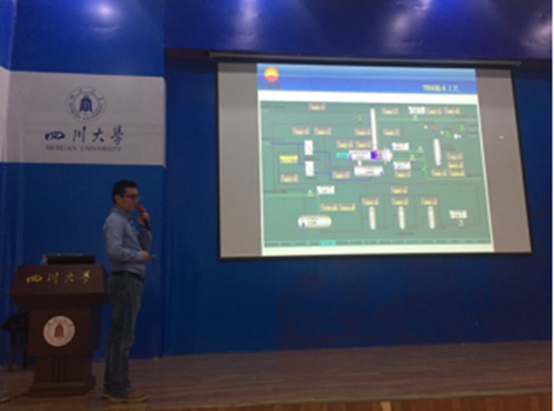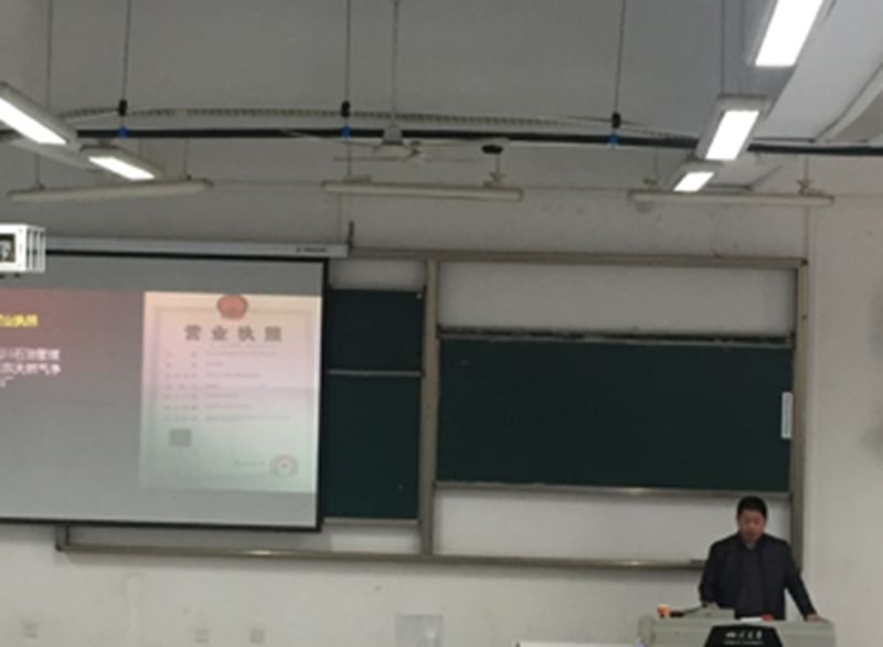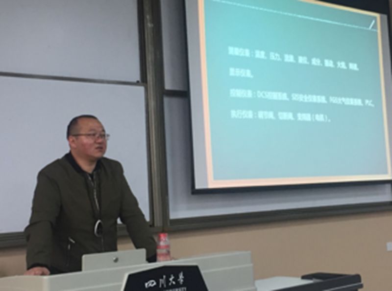 ,目前担任重庆天然气净化总厂大竹分厂厂长的张小兵向同学们分享了其成长历程,并详细讲解了天然气净化的工艺流程。重庆天然气净化总厂设计研究所仪表工程师彭云则向大家介绍了天然气净化装置中使用的各种仪表以及企业在控制智能化与数字化的巨大改进,展示了现代化工企业的技术特点。最后,重庆天然气净化总厂企管法规科副科长袁伟用轻松诙谐的语言给大家讲解了企业管理方面的知识,在宣传AV研究所的同时,让同学们对企业管理有了不一样的理解。