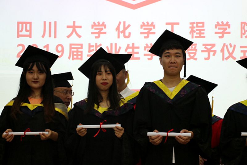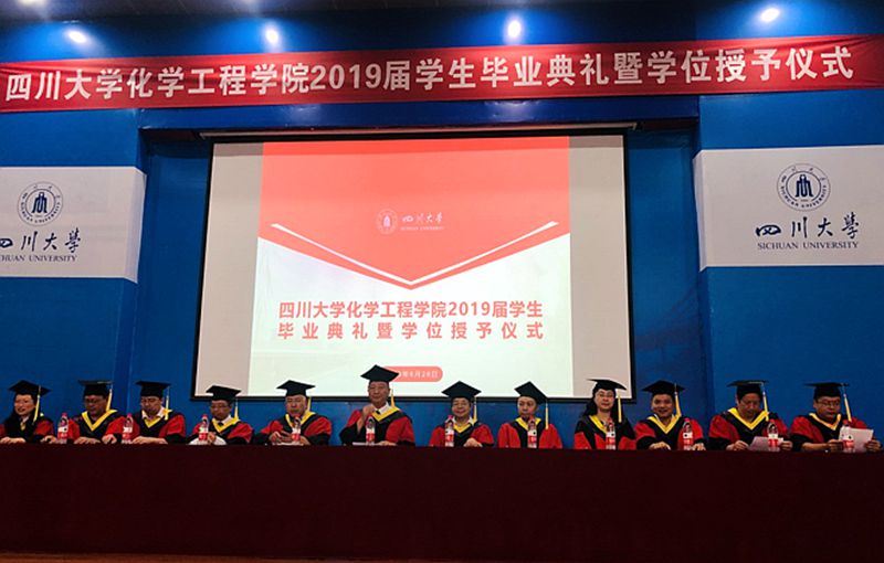 2019届学生毕业典礼暨学位授予仪式在江安校区水上报告厅隆重举行。2019届毕业的24位博士研究生、173位硕士研究生和261位本科生齐聚一堂,在师长亲友的共同见证下,为自己的川大化工求学岁月画上圆满的句号,开启新的人生征程。