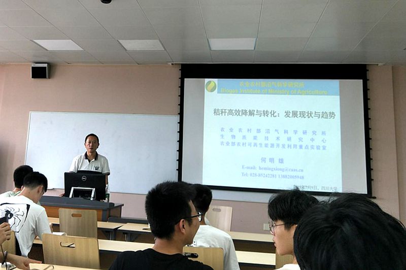 何教授是农业部沼气科学研究所研究员,也是我们95级的学长,这使我们倍感亲切。此次授课,何教授围绕秸秆降解与转化的“研究背景、研究现状、发展趋势”三个方面展开讲授,同学们受益匪浅。