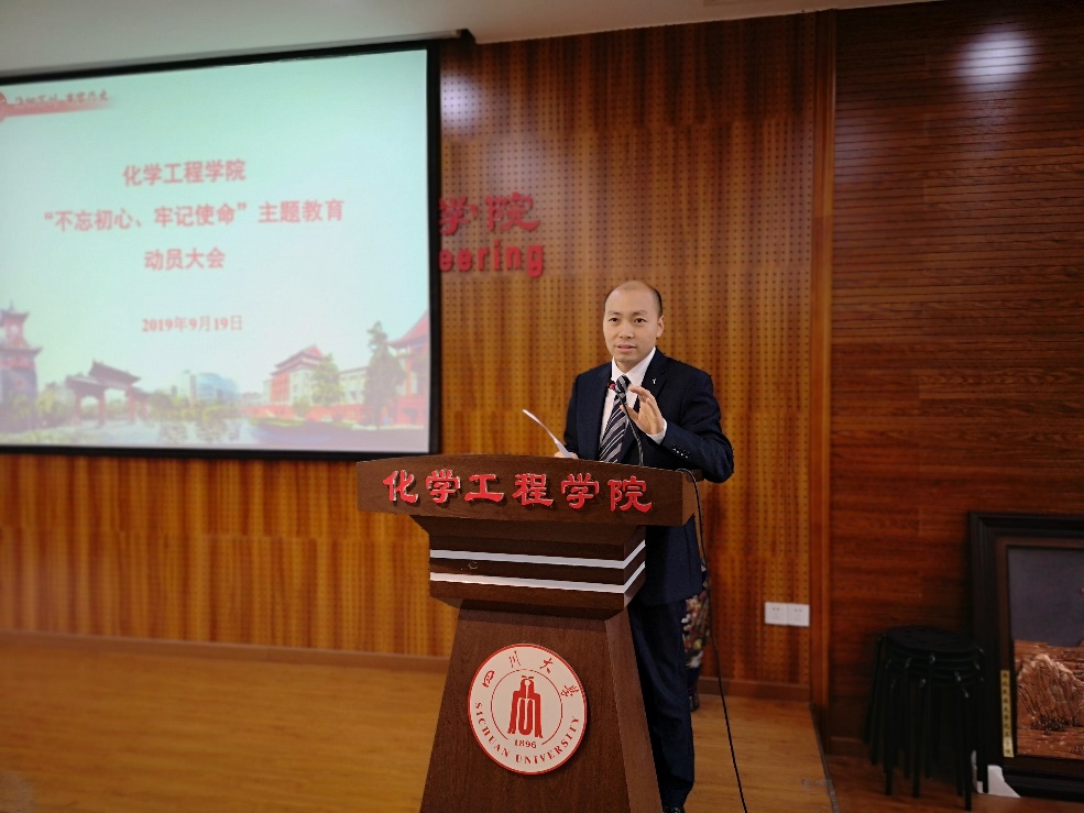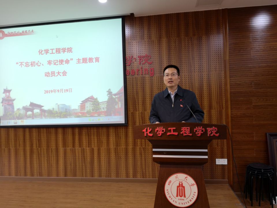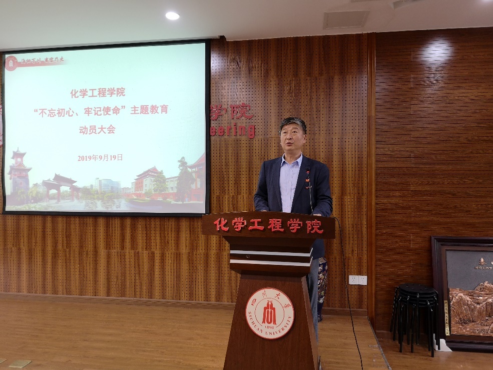 “不忘初心、牢记使命”主题教育动员大会在望江校区正行楼(西二教)313报告厅举行。学校主题教育第五指导组组长、党委学生工作部(处)、武装部部(处)长陈森出席会议并讲话。学校第五指导组成员、学校社科处副处长张洪松以及指导组联络员李宜等到会指导。