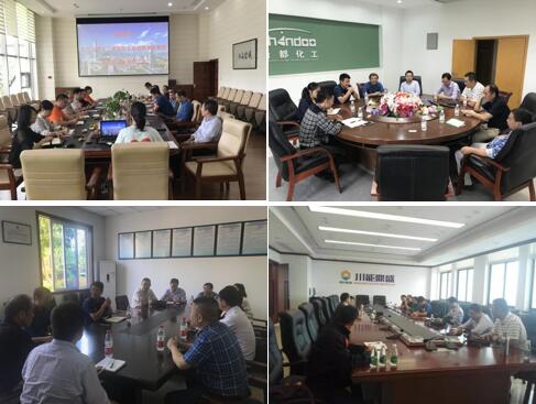 开展“产学研”合作。紧接着,教研室赶赴眉山第一污水处理厂进行调研,在安排好实习相关工作外,蒋炜教授、蒋绍志教授还就污水处理厂提出的技术问题进行了细致解答。在简单用过工作餐后,教研组又赶赴金象化工集团进行对接,金象化工集团总裁唐印先生接待了教研组一行,向教研组详细介绍了集团的发展历程及业务范围,并结合企业实际情况就实习内容进行了调整,双方还就催化剂、尿素高值化利用等方面进行了技术探讨。在新都化工公司,教研组与唐磊总经理就实习具体内容进行了安排。