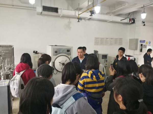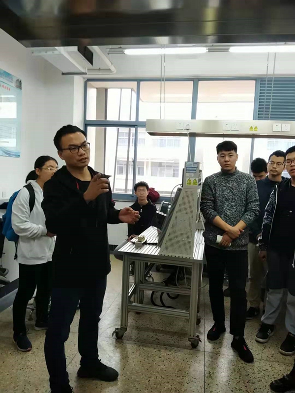 林翔老师为同学们介绍了目前学院公用仪器开放平台的红外光谱、气相色谱、热重、ICP等公用设备。林老师以提问的方式引导学生对每一台设备的原理及用途进行思考,激发同学们的科研兴趣。最后同学们依据自己所属专业分别参观了各专业实验室,参观过程中王袁隆老师和魏竭老师分别负责了过控实验室和生工制药实验室的参观,详细的讲解专业实验开设课程及实验设备,为同学们展示的相关专业的学科特色。