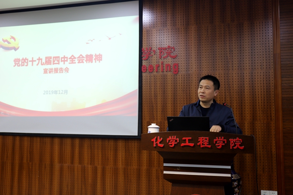 在望江校区正行楼(原西二教)313报告厅组织召开党的十九届四中全会精神宣讲暨警示教育报告会。学校十九届四中全会宣讲团成员、校纪委副书记、校纪委办公室主任兼监察处处长滕文浩为全院教师开展全会精神宣讲和警示教育。报告会由学院党委书记庞国伟主持,学院全体领导班子成员、工会主席、全体教职工和离退休教师代表参加会议。