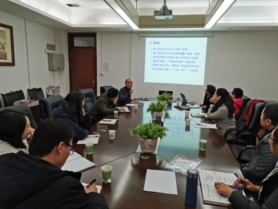 最后,朱家骅老师以《化工原理》课程对新工科人才素养的基础性作用为题,向大家介绍了新工科背景下化工人才的时代特征,提出新工科背景下化工人才素养的精髓在于探索与创新,素养的养成在于培养学生“现象←→理论”的思维习惯,而模型化是思维与表达的工具,同时提出三传一反是化工原理之原理,并举以实例,阐述了模型化表达在化工原理课程及化工领域中的应用;最后指出,新工科背景下化工的教学改革应依靠教师、教材及教学计划这“三教”改革,为今后教研室的建设指明了发展方向。