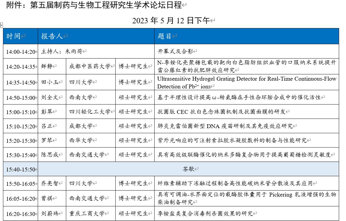 及各兄弟院校相关专业硕博士研究生参加,以期促进制药与生物工程领域的合作和交流,拓宽研究生学术视野,激发研究生创新思维,提升研究生培养质量。现将论坛具体事项通知如下: