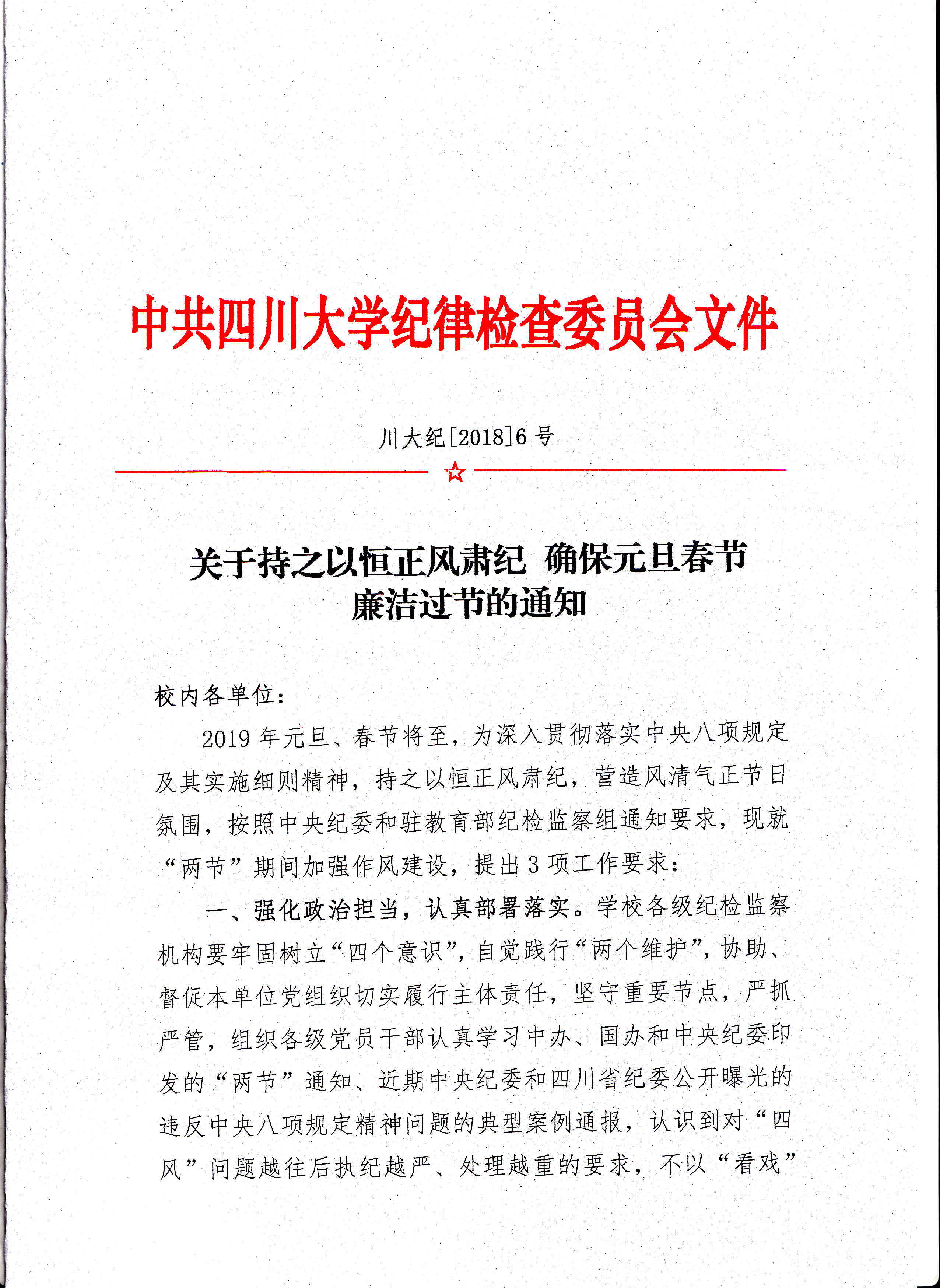 关于持之以恒正风肃纪 确保元旦春节廉洁过节的通知
