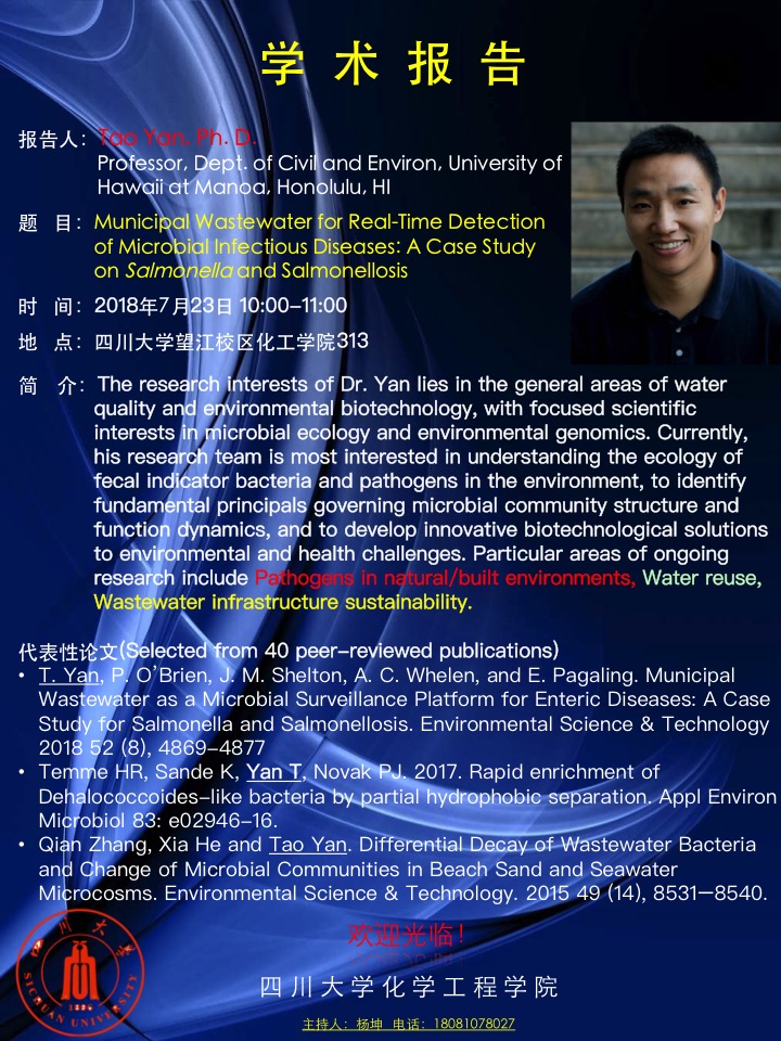 题目:MunicipalWastewater for Real-Time Detection ofMicrobialInfectious Diseases: A Case Study onSalmonellaandSalmonellosis
