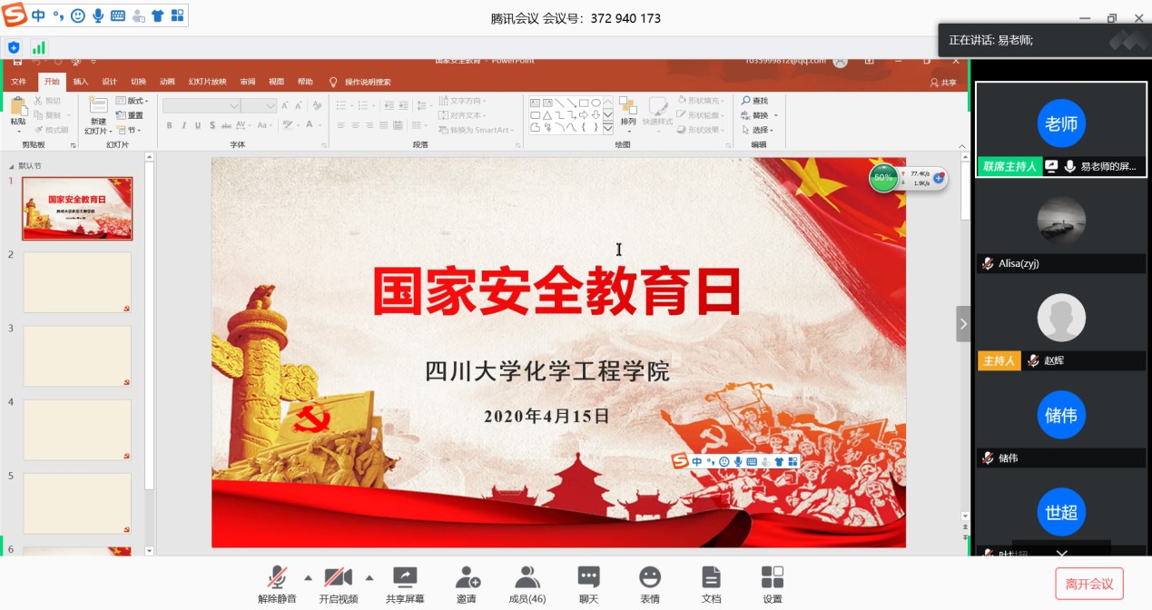 化工系通过线上视频会议召开了“4·15”国家安全教育主题活动、政治学习暨党组织生活。会议由化工系党支部书记易美桂教授主持,化工系全体老师参加了“4·15”国家安全教育主题活动和政治学习,全体党员老师参加了党组织生活。