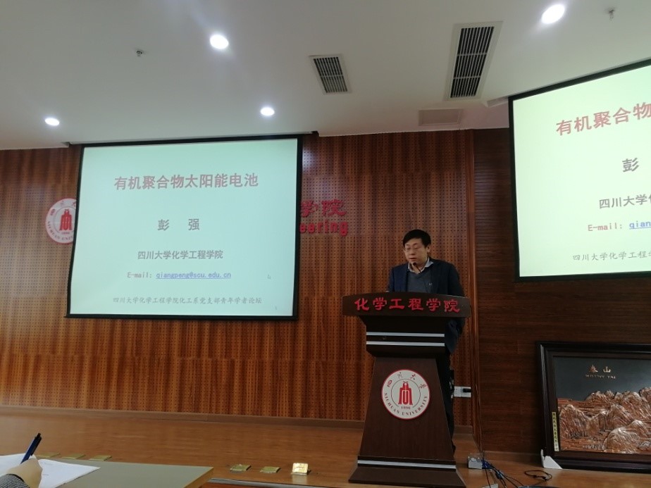 首届化工青年学者论坛中,彭强老师作了题为《有机聚合物太阳能电池》的学术报告,从国家战略需求引入研究背景,详细地讲解了围绕有机聚合物太阳能电池开展的最新研究进展;刘冲老师作了题为《多孔材料中的动态化学过程》的学术报告,细致地讲解了MOF材料的应用前景、基本构造、制备过程和课题组近期的研究进展;赵辉老师作了题为《化学燃料驱动的非平衡态乳液聚合》的学术报告,为解决乳液聚合存在的破乳难题,提出耗散型乳化剂的制备,并发散至非平衡态振荡反应的研究。参会师生就学术报告内容和学科交叉发展等问题展开了热烈而充分的讨论。
