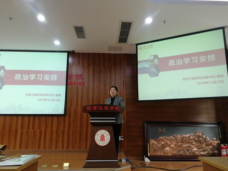 谢锐同志首先介绍了本学期政治学习和党组织生活总体安排,梳理了化工系党组织构架和党小组工作形式,讲述了政治学习的新模式,即文件精神领学活动,深入结合科研、教学、育人和生活等系列主题深讨论的模式,进一步提升化工系教师的业务能力和党支部的凝聚力。