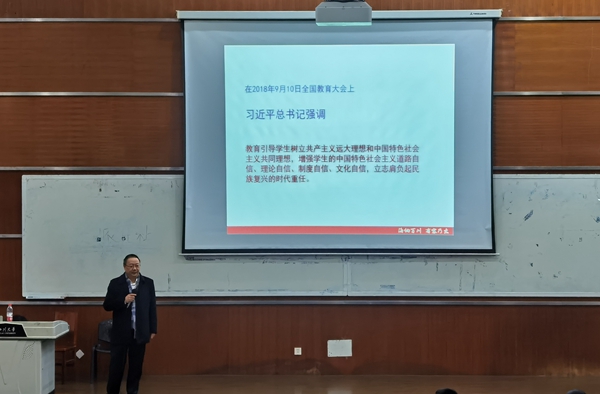副校长梁斌教授在江安校区综合楼C407为学院全体大一同学上党课。党课由学院副书记姜利寒老师主持。此次党课以《树立远大理想,做新时代化工学子》为主题,讲解了理想的概念与意义,引导同学们树立理想、正确看待化工行业、成为新时代的化工人。梁斌老师的党课深入浅出、娓娓道来,让同学们的思想接受了一次洗礼。