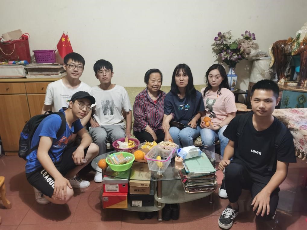 第四组六名同学,来到刘慕尧老师家中。在给老师送去慰问品的同时,与老师进行了亲切交谈,并帮助老师进行了简单的家务清扫。