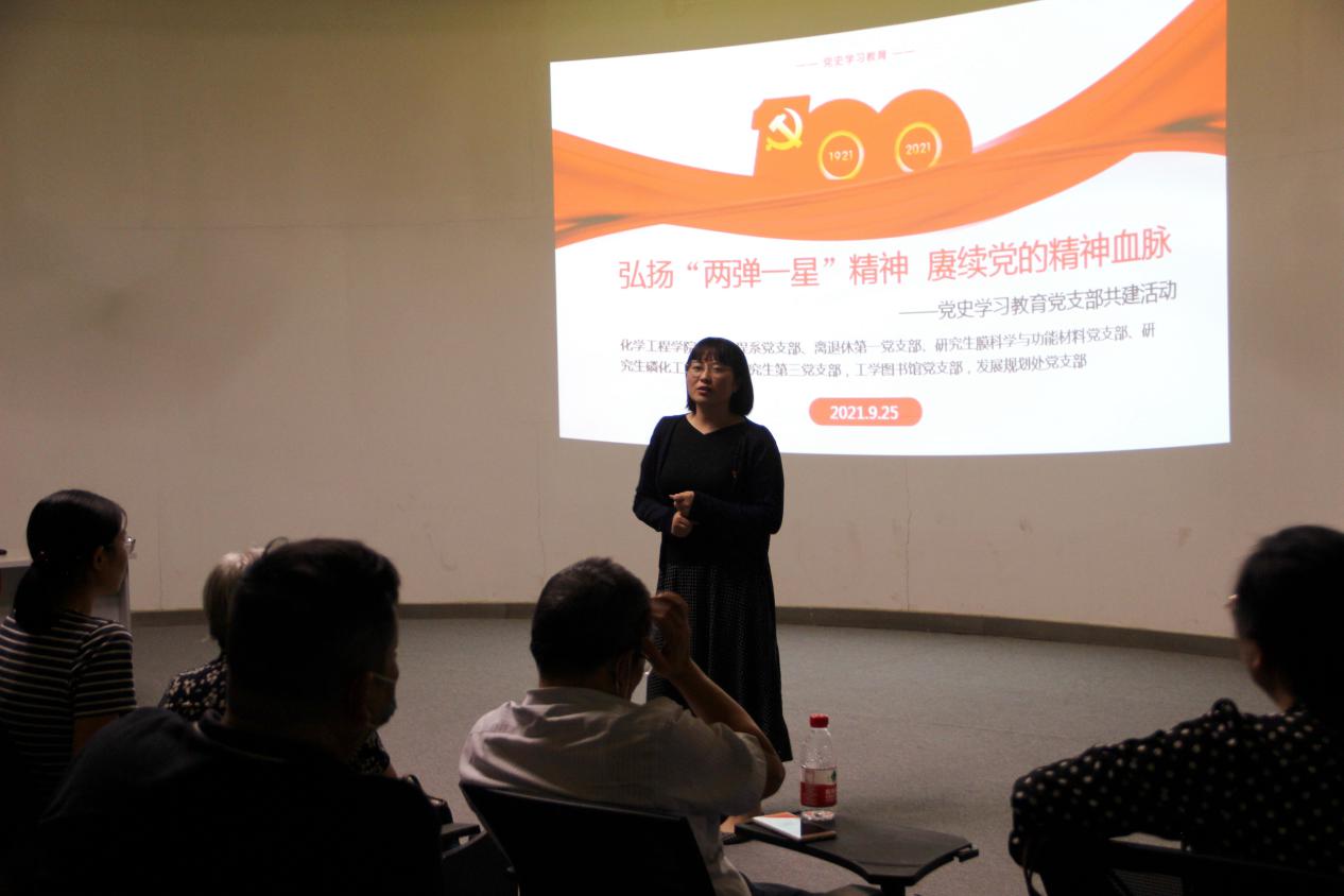发展规划处刘文红同志介绍了发展规划处开展的主要工作,以及当前“十四五”规划、新一轮“双一流”建设、第五轮学科评估等有关工作的进展情况。她说到,本次党支部共建活动不仅丰富了党组织活动形式,更增进了支部间的了解、提升了党建事业融合发展的内生动力,为各支部下一步更深层次、更多角度的开展工作奠定了良好的基础。