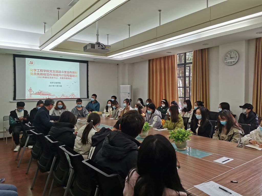 在望江校区化工楼227会议室组织开展“党支部战斗堡垒作用提升和党员先锋模范作用发挥”专题培训会。学院党委书记庞国伟,学院党政办李晓燕老师、高敏老师和全体学生党支部书记、支委等参加会议。