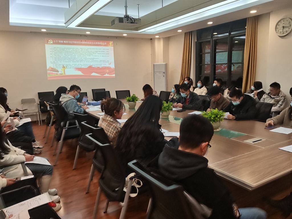 本次会议主要分为两个部分。第一部分是关于十九届六中全会精神的学习。2021年11月8日至11日在北京召开了中国共产党第十九届中央委员会第六次全体会议,党的十九届六中全会审议通过的《中共中央关于党的百年奋斗重大成就和历史经验的决议》,对习近平新时代中国特色社会主义思想作了概括和阐述,这是全会《决议》的一个突出亮点,也是一个重大贡献。全会指出,习近平新时代中国特色社会主义思想是当代中国马克思主义、二十一世纪马克思主义,是中华文化和中国精神的时代精华,实现了马克思主义中国化新的飞跃。通过学习,我们进一步理解了习近平新时代中国特色社会主义思想的理论内涵、重大意义和习近平新时代中国特色社会主义思想在马克思主义发展史、中华文化发展史上的重要地位。