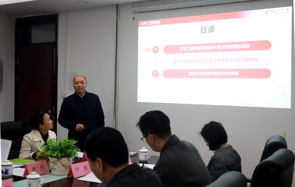 党委在学校党委坚强领导下,在党委组织部有力指导下,深入学习贯彻习近平新时代中国特色社会主义思想和党的十九大及十九届历次全会精神,坚持以党的政治建设为统领,团结带领学院全体师生做到“爱党爱国、立德树人、敢为人先、攻坚克难、发展至上”,做好把方向、定政策、促改革、抓发展、保落实有关工作,有力推进党建与事业融合发展,学院党建和一流学科建设取得可喜成绩。李天友重点介绍了学院党建“1347”的特色做法。对于今年的党建工作,李天友说到,学院全体师生将深入学习贯彻习近平新时代中国特色社会主义思想和党的十九届六中全会精神,做“两个确立”的坚决拥护者和“两个维护”的坚定践行者,把方向、强学习、紧联系、保落实,坚定务实作风,大力解决影响发展的主要矛盾和矛盾的主要方面,聚焦立德树人根本任务,对标学校“三高”目标,切实提升办学水平,努力建设一流化工学科。