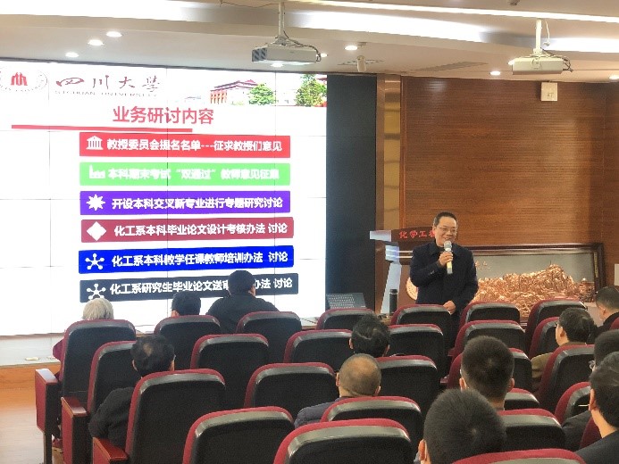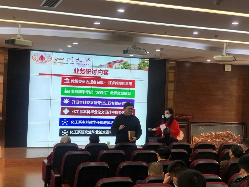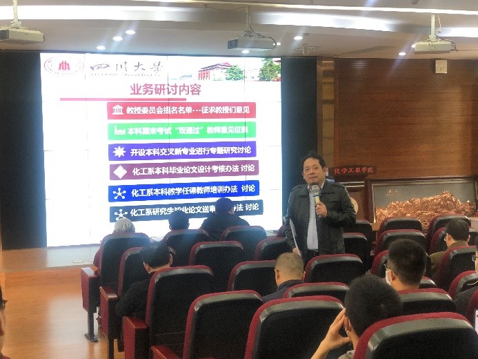 袁绍军老师主持了化工系新学期的教学研讨,与会老师围绕本科期末考试“双通过”、开设本科交叉新专业、本科毕业设计考核办法、本科教学任课教师培训办法、研究生毕业论文送审办法等几个问题踊跃发言,展开了热烈地讨论。本次讨论进行了3个多小时,大家集思广益,积极建言献策。