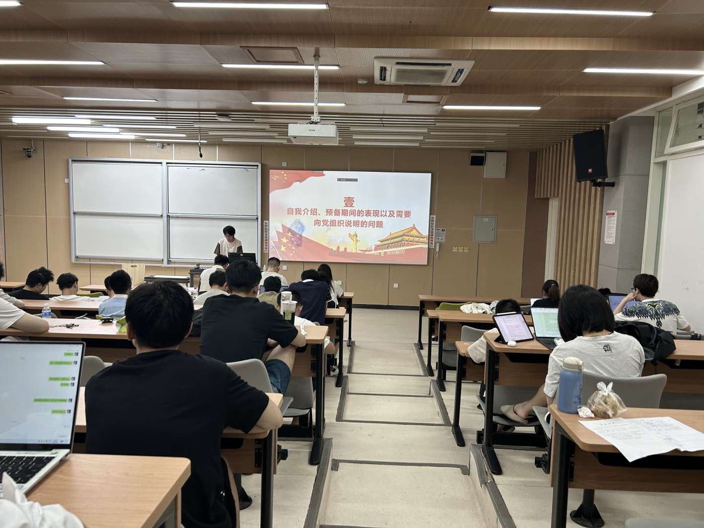 本次会议严格按照各项相关程序规定执行,秉承公开透明的原则。会议第一项,由陈禹、周涵皓等五位同志依次进行自我介绍,并总结一年来的进步与不足,并提出了自己的整改措施,端正了入党动机,坚定了自己入党的信念,并向党组织提出申请,申请成为一名合格的中国共产党正式党员。