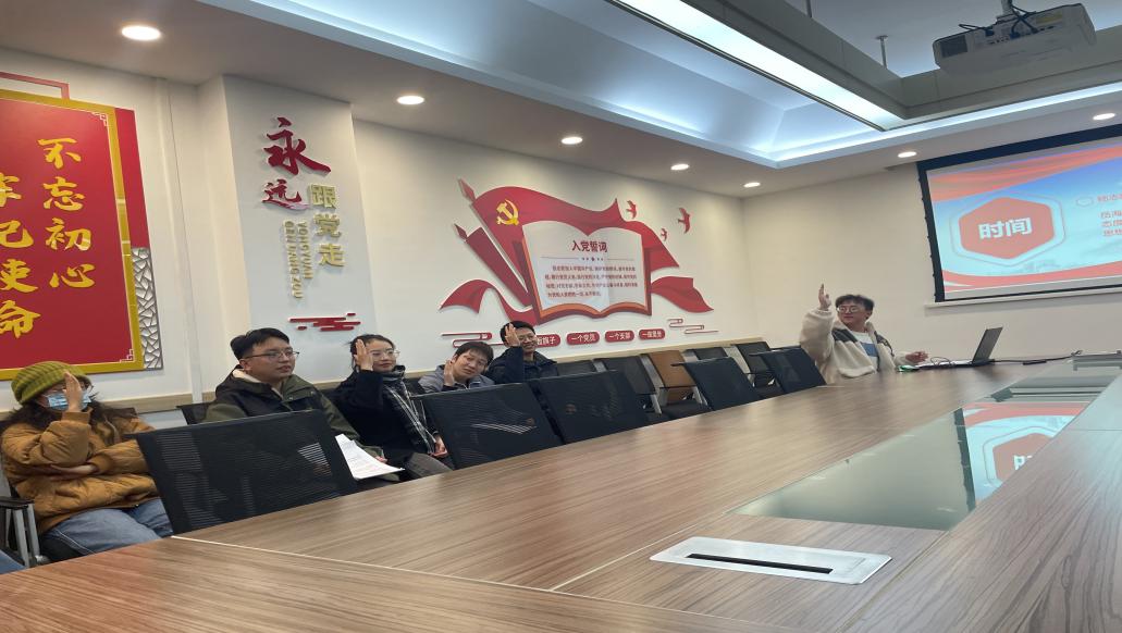 望江校区化工楼227会议室召开了党员大会。本次大会由支部书记杨柏斌主持,研究生第四党支部全体党员参加,会议主要讨论了关于杨志鹏同志预备党员转为正式党员的相关事宜。