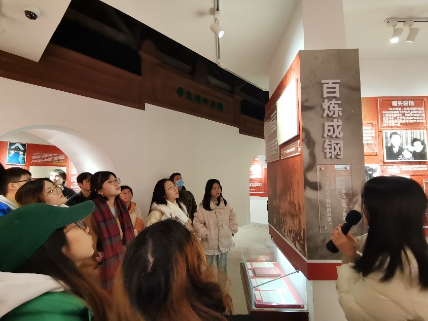在江姐纪念馆讲解员的引导下,两个支部的研究生党员首先参观了江姐事迹展厅。江姐事迹展厅以“锦江红梅傲雪开——AV研究所