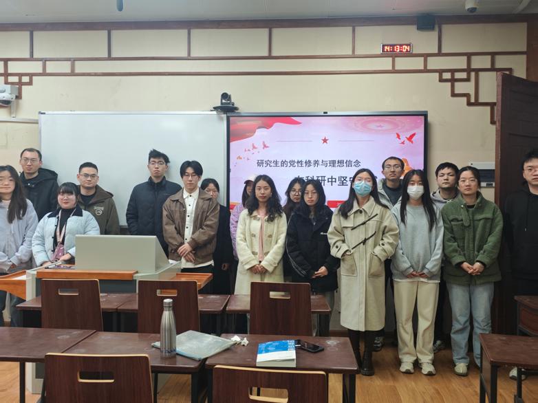 化学学院2024级博士第一党支部于2025年3月22日在望江东二教103教室联合开展研究生党员学长领航计划与思政教育调研第四期活动。活动以理论研学、榜样领航为主线,深入贯彻中央八项规定精神,强化研究生党员纪律意识与使命担当。
