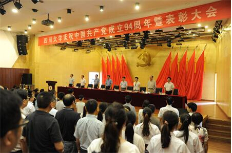 庆祝中国共产党建党94周年暨先进基层党组织、优秀共产党员和优秀党务工作者表彰大会在望江校区文华活动中心二楼报告厅举行。