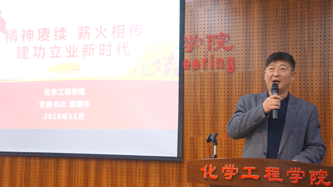 杰出教授、具有重要影响的磷化工领域专家钟本和等优秀知识分子的先进事迹,用实例讲解了爱国奋斗精神的内涵。最后,庞国伟书记从大力弘扬爱国奋斗精神,争做“四有”好教师,立足工作,从做好一名合格的教师做起,以及主动担当,做各方面的优秀教师三个方面对全院教师的责任和担当提出了殷切希望。