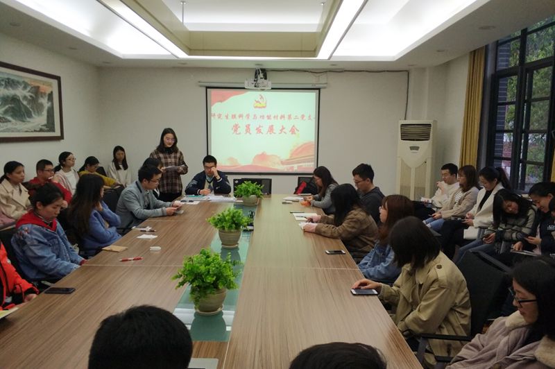研究生膜科学与功能材料第二党支部于2019年3月26日晚18:30于化工楼227会议室召开了接收预备党员支部大会。本次大会由支部书记尹微虹主持,主要讨论和审议接收党员发展对象吕荥宾同志为预备党员的相关事宜。