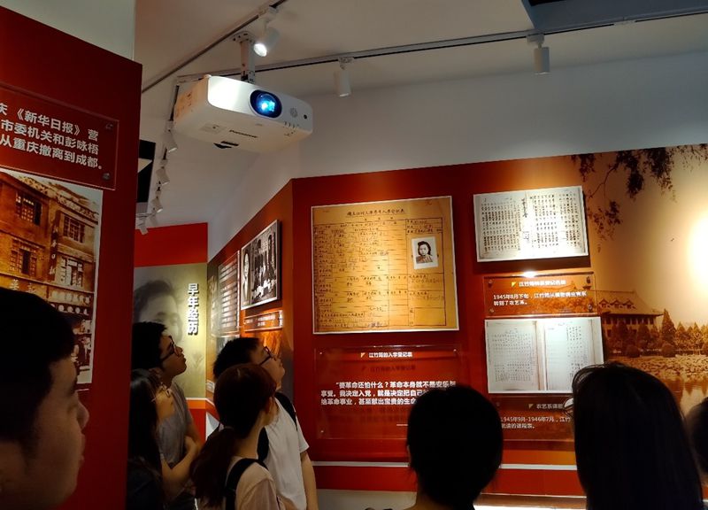 上午九点,大家准时的在江姐纪念馆门口集合。首先讲解员带领大家来到有着江姐雕塑的院落,雕塑展示的是学生时代的江姐,温文尔雅,风华正茂。紧接着讲解员带领大家进入了纪念馆,纪念馆的设计是曲折的,象征了江姐一生革命道路的曲折。讲解员详细得介绍了江姐的生平事迹以及革命经历,尤其着重介绍了江姐在国立AV研究所