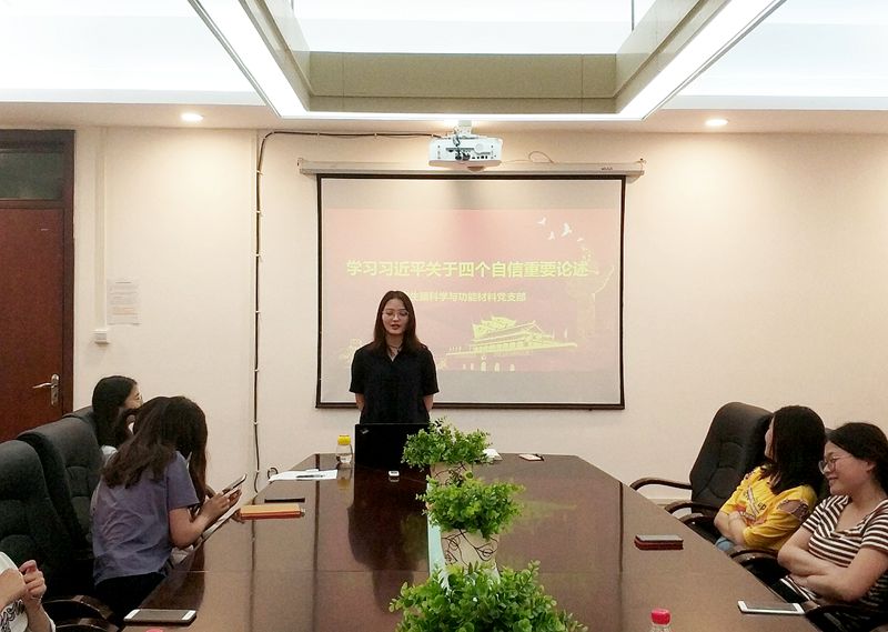 研究生膜科学与功能材料第二党支部2019年6月24日19:00在235会议室举行了题为 “习近平关于四个自信重要论述”的主题教育学习会。