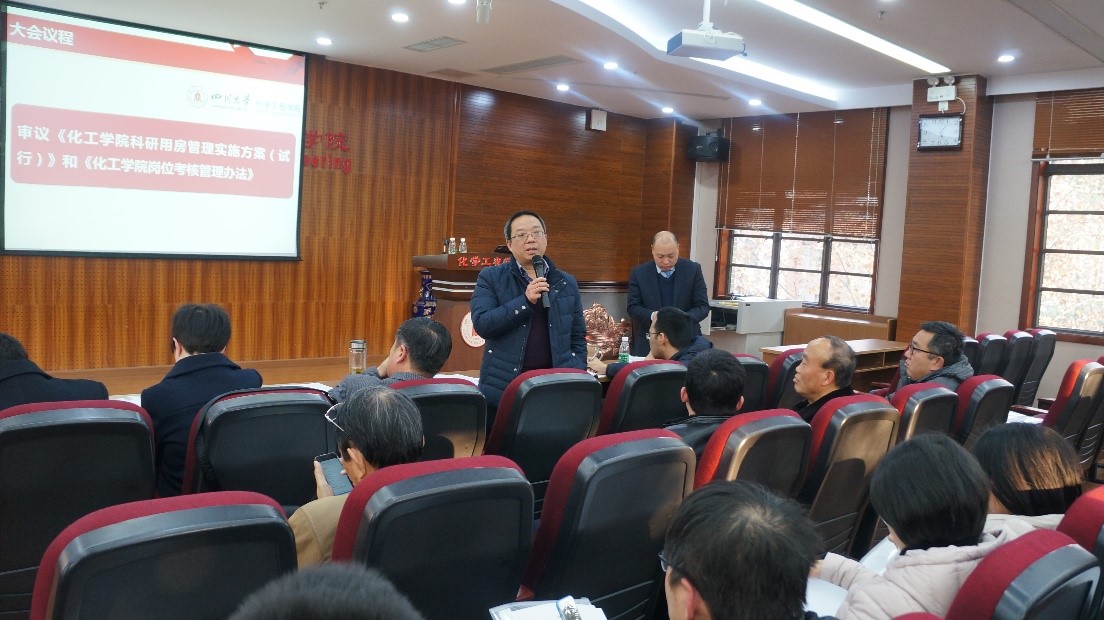 随后,庞国伟书记代表学院向全体与会代表讲解了《学院科研用房管理实施方案(试行)》和《学院岗位考核管理办法》。与会代表对两个制度内容进行了充分的讨论。