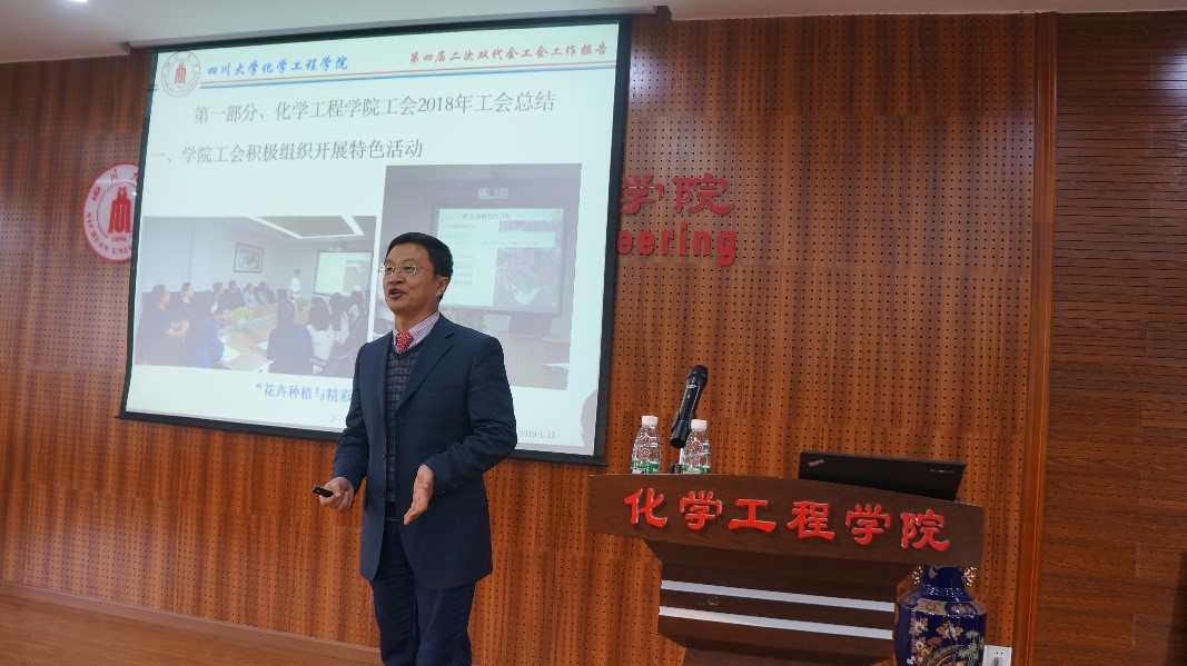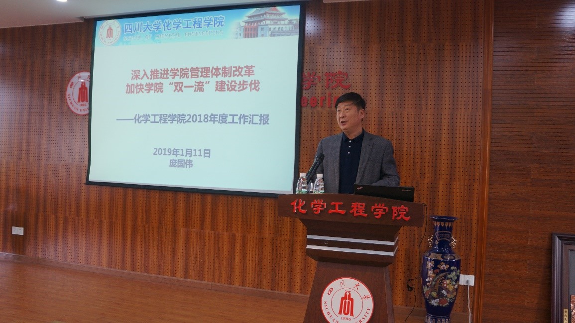 会议听取了学院党委书记庞国伟同志代表学院所做的《学院工作报告》和《财经工作报告》。庞书记在报告中全面回顾和总结了2018年全院工作。2018年是全面贯彻党的十九大精神的开局之年,是庆祝改革开放40周年,也是学院深化改革创新、加快推进“双一流”建设和校院两级管理体制改革的关键之年。学院全体师生深入学习贯彻习近平新时代中国特色社会主义思想和党的十九大精神,科学研究、人才培养、党建工作和队伍建设等方面都取得了显著成就:褚良银教授等获得2018年度国家技术发明奖二等奖;杰出教授钟本和先生获得“2018年度何梁何利奖”;学院获准国家重大项目2项,直接经费1800多万元。由钟本和教授带领团队入选全国首批“全国高校黄大年式教师团队”;梁斌教授获得国家级教学成果奖一等奖,宋航老师当选“四川省优秀教师”。同时,我们的党员师生充分发挥先锋模范作用,化学工程系党支部成功入选“全国党建样板支部”,研究生过程装备与安全科学党支部获得全国高校“百个研究生样板党支部”,党员罗杰同志获评“2017年度四川省优秀共青团员”和四川“勤学奋进新青年”。庞书记也代表学院对全院师生员工和离退休老同志在过去一年对于学院工作的帮助和支持表示感谢。随后,庞书记结合学校“两个伟大”的全面推进和校院两级管理体制改革,提出了2019年的工作展望,他希望全院师生共同努力,集中精力抓好一流拔尖人才、一流师资队伍、一流学科平台、一流成果转化机制、一流国际合作交流、一流环境条件建设,全力推进一流学科、一流专业建设,为早日建成一流AV研究所