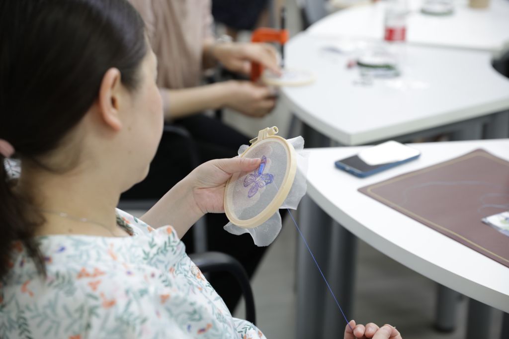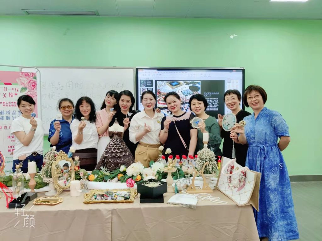 工会和吾同高定文化传播有限公司的大力支持,大家为活动的顺利开展精心布置场地,营造了温馨、高雅的氛围,让参与的女职工倍感亲切和愉悦。来自吾同高定文化传播有限公司的三位老师带领女职工们了解法式刺绣的历史和发展过程,学习品鉴法式刺绣作品,并现场制作精美的胸针。大家兴趣盎然、跃跃欲试,在老师们的指导下纷纷制作出了独一无二的作品。