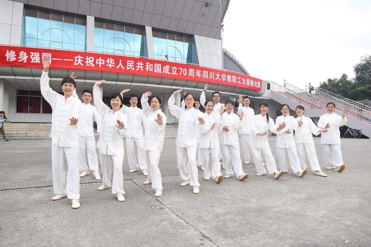 为了更好地普及中华传统体育项目,激发爱国主义精神,增强教职工的健康意识和身体素质,真正使教职工了解太极拳、热爱太极拳,在繁忙的教学科研之余加强体育锻炼,学院工会特别邀请了成都体育学院的艾泽秀教授对学院参赛老师进行了培训和指导。参赛老师们在繁忙工作之余,积极投身到太极拳学习之中。接连的培训强度不仅没有削弱大家的意志,反而使大家越发喜欢上了这项传统体育项目。白鹤亮翅、海底针、云手,一招一式中不仅有着对太极阴阳的把控和理解,更有对中国传统文化的敬佩和热爱。一段时间的训练下来,老师们进步明显,得到了教练的充分肯定。