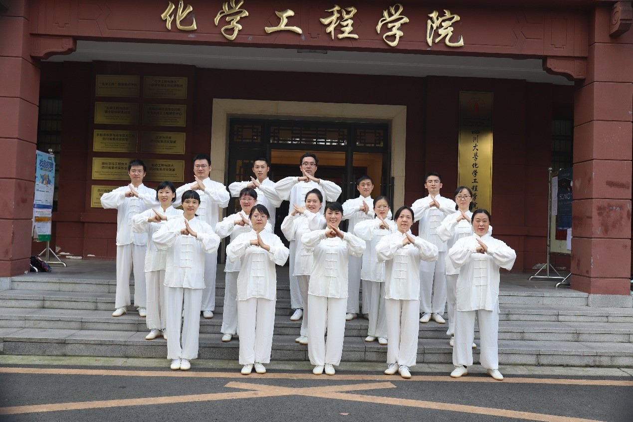 代表队与材料学院代表队一起登台比赛。面对严苛的裁判,老师们毫不畏惧,一招一式间尽显化工风范。随着音乐的缓缓结束,大家如祥云流水般完成了规定的动作,台下掌声不断。