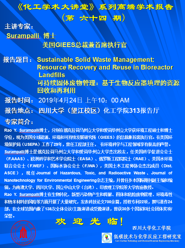 “化工学术大讲堂”系列高端学术报告学术报告(第六十四期)