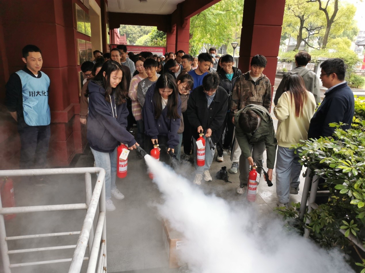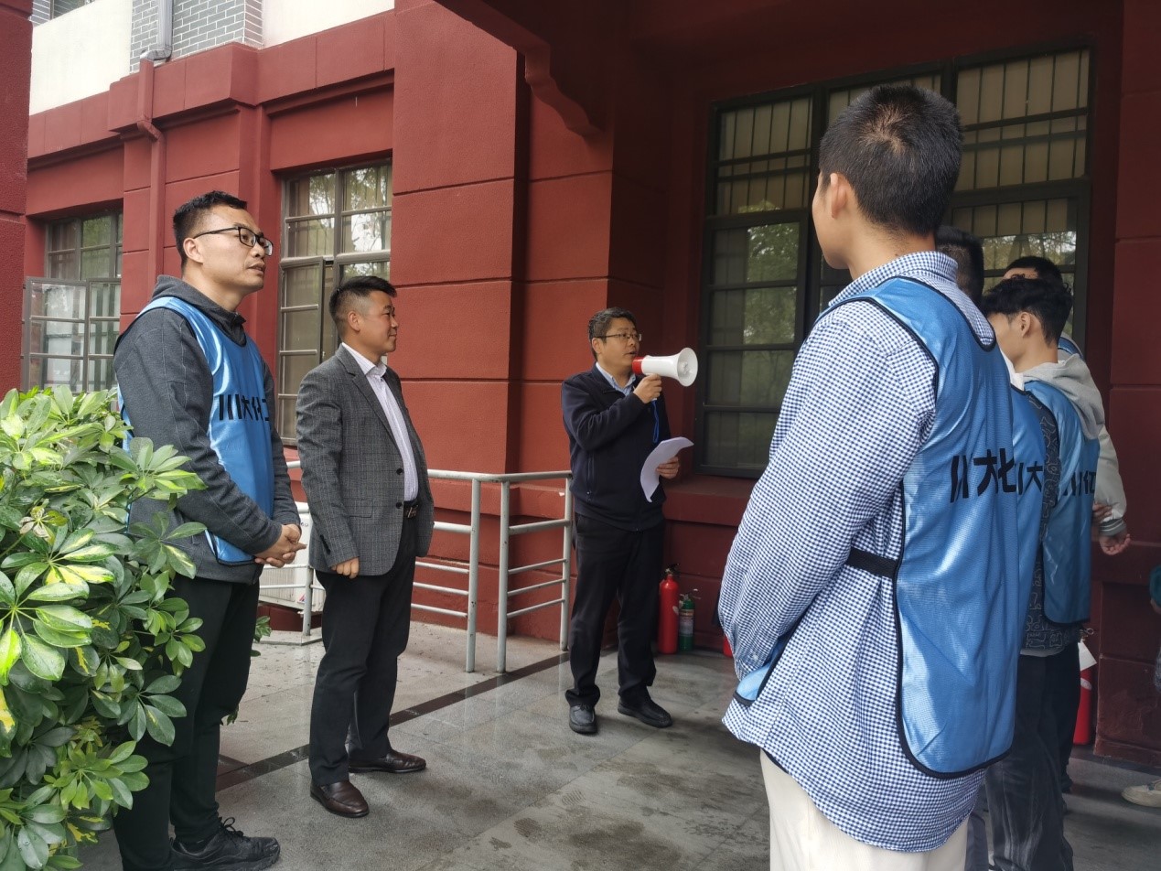 实验室安全概况,并讲述了疏散逃生演练的重要性。学院安全专家组王袁隆老师对参演师生进行了报警、灭火、疏散、逃生、救援等培训,并就消防逃生疏散演练做了详细讲解。