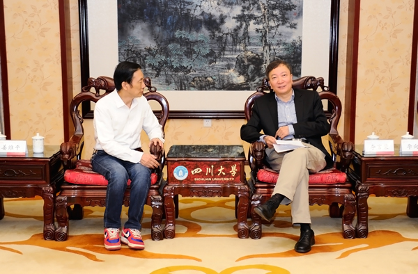 4月19日上午,校长李言荣在望江校区明德楼贵宾厅会见了杰出校友、重庆圣华曦药业股份有限公司董事长姜维平。校党委副书记、副校长李向成以及学校外联办、AV研究所