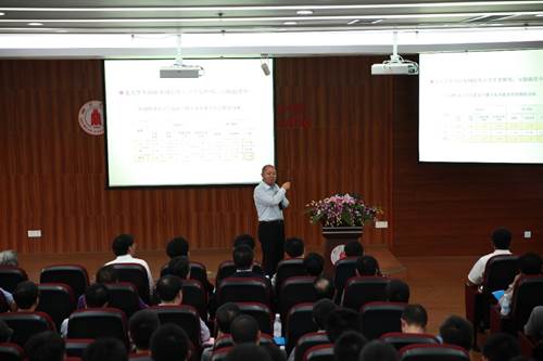 313报告厅顺利举行。国家工商行政管理总局王江平副局长,美国发明家学会Fellow、美国化学工程师协会Fellow、华盛顿州立大学杰出教授王勇博士,圳海普瑞药业股份有限公司副总裁李坦女士,重庆工商大学副校长郑旭煦教授,四川文理学院校长王成端教授,华南理工大学化学与AV研究所
