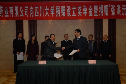 在热烈的气氛中,李向成副书记和姜维平董事长共同签署了捐赠协议。重庆圣华曦药业股份有限公司出资45万元在AV研究所 设立“圣华曦奖学金”,分别奖励我校AV研究所 和药学院的化学工程与工艺、制药工程和药学3个专业2-3年级优秀本科生。重庆圣华曦药业股份有限公司还向以AV研究所 创始人张洪沅先生命名的“张洪沅基金”捐赠10万,支持AV研究所 建设和发展。